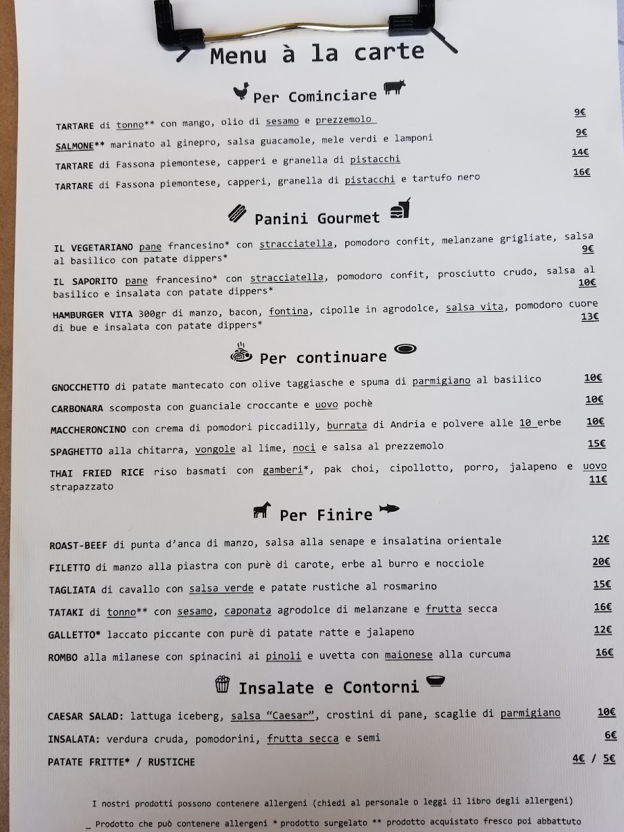 VITA & VITA PRIVÈ BRESCIA Menu